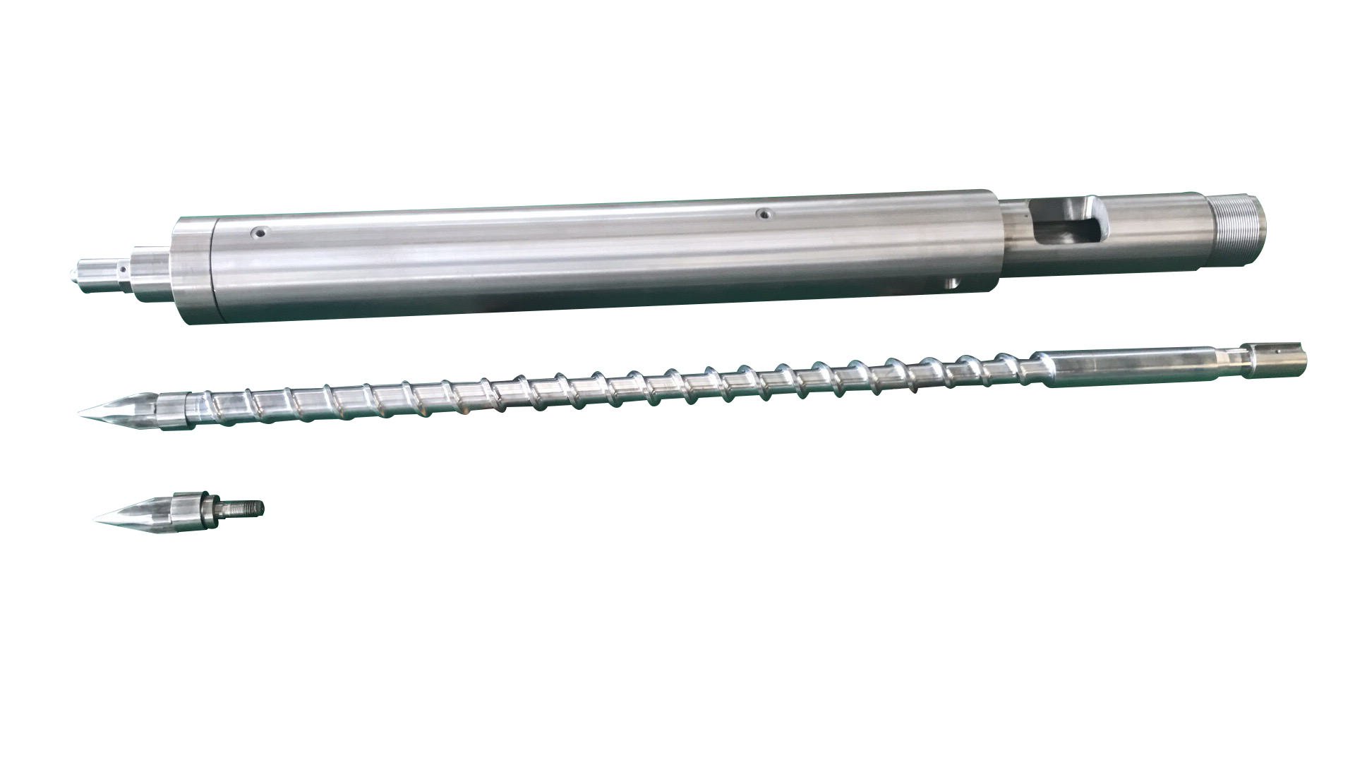 淬火處理,硬HRC55-58,適合各種透明料腐蝕性強(qiáng)的物料,提高螺桿的使用壽命。