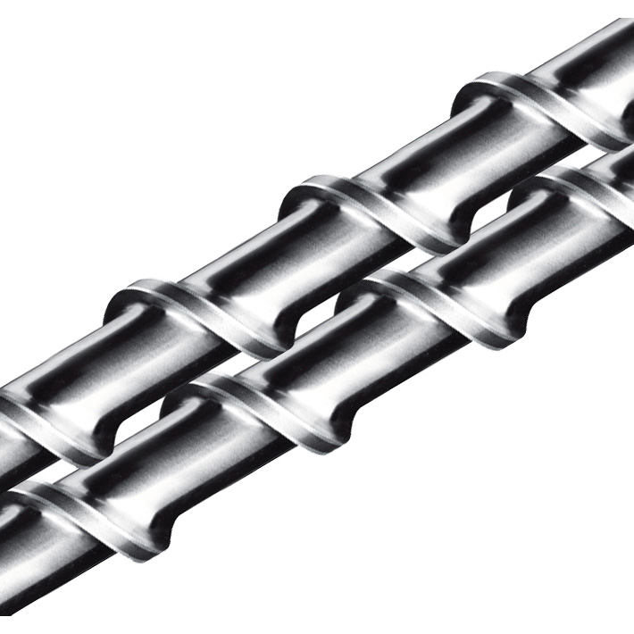 雙金屬單、雙螺桿采用特殊合金粉末在螺桿螺棱部分進行噴焊,針對不同用功的螺桿,可以采用不同的合金和噴焊方式。